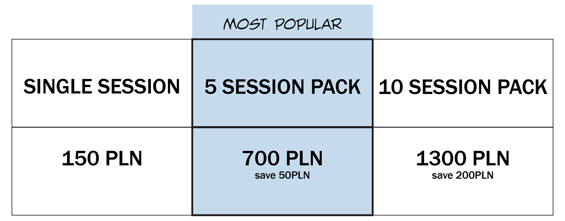 In-person sessions take place at Shooters Gym in Konin. The session price covers my coaching only; entry to the gym is additional. You can pay the entry fee via Shooters membership, multi-sport card, or Medicover.